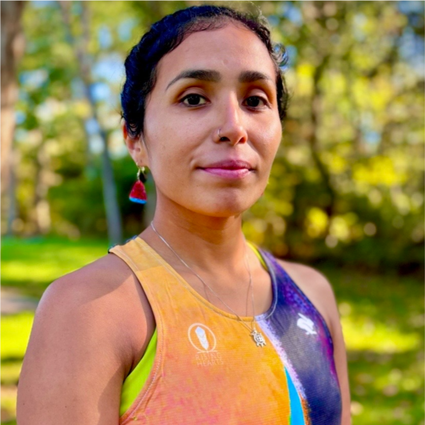 Jordan Marie Brings Three White Horses Whetstone, Lakota, is a fourth generation runner, athlete advocate, community organizer, project manager, filmmaker, founder of Rising Hearts since 2018, and a mom to a 3 year old and 1 year old twin girls. Since the 2019 Boston Marathon, she uses her platform to help raise awareness of missing and murdered Indigenous relatives, for their families, survivors and advocates. Jordan is committed to helping make the running and community spaces a more equitable, safe, visible, supportive, diverse, inclusive, affordable and accessible place for people today and for the next generations through meaningful storytelling, Rising Hearts Race organizing, Running with Purpose Athlete Advocate program and Running On Native Lands programs.